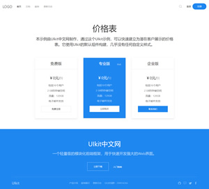 使用卡片组件构建的具有页眉和页脚的定价页面示例。