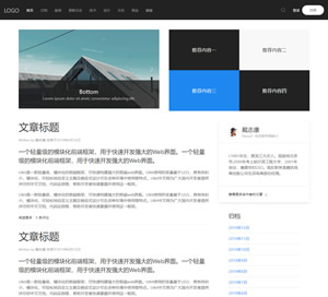带有导航栏、文章列表、幻灯片和推荐内容区的博客模板。